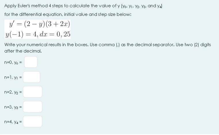 Solved Apply Euler S Method 4 Steps To Calculate The Value Chegg Com